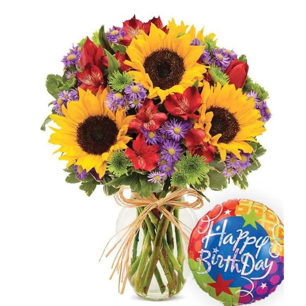Celebrate a birthday with a flower bouquet inspired by the essence of Europe, paired with a Happy Birthday balloon. They’ll love the colors and festive flowers! You’ll love their happy smile!