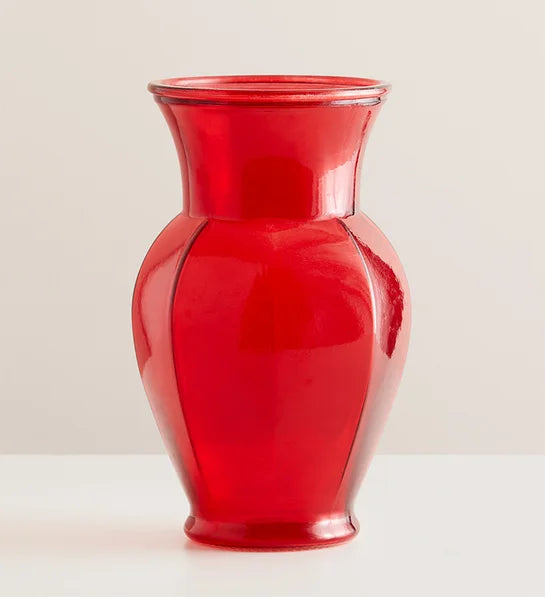 • Artistically designed in our exclusive ruby red glass vase; measures 8.75”H